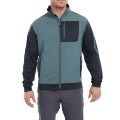 Heat up your game in the FootJoy ThermoSeries Hybrid Golf Jacket. The brushed back jacquard knit body and sleeves, lightweight woven quilted on front panels and collar, adjustable collar, and open hand pockets are engineered to adapt as the weather changes so you can look, feel, and play your best in any conditions.