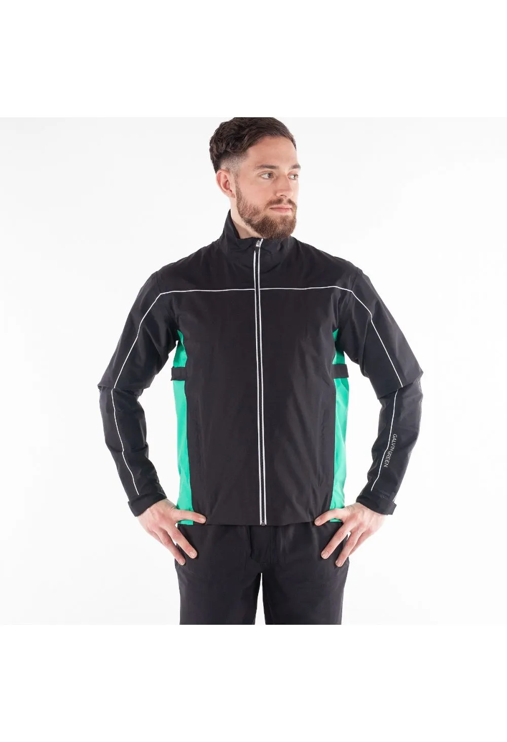 Outstanding Gore-Tex performance from the supreme Galvin Green golf range, welcome to the Ace Gore-Tex Waterproof Golf Jacket in Black, Green & White. This is the ultimate jacket for performance, comfort, and protection from the elements. It features lined full-zip GORE-TEX stretch fabric that is breathable and offers complete freedom of movement. You will also stay warm and dry as the jacket is 100% waterproof and windproof. Shaped sleeves, front pockets, and two inner pockets for secure storage of your valuables are included to complete the impressive range of features.