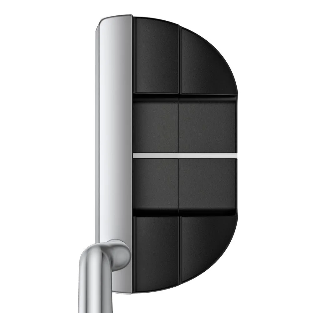 Fit for straight and slight-arc stroke types, the DS72 has a shallow milled face to deliver a firmer feel and consistent ball speed with pleasing acoustics. A platinum topline contrasts against the black cavity where a white alignment line and ball-width cavity floor focus the eye. The more squared-off will be aesthetically pleasing to the mid-mallet player.