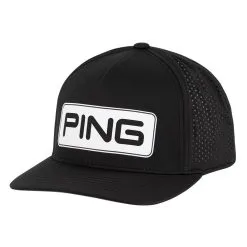 The Ping Tour Vented Delta Golf Cap is a tour-inspired cap with a double layer PING heat transfer at the front. It has an adjustable snapback closure, so one size fits most, and a further embroidered Ping logo features at the back. Laser-cut side panels provide better airflow, and the moisture-wicking SensorCool® headband helps to keep your head dry and comfortable. Heavy buckram fabric helps maintain structure.