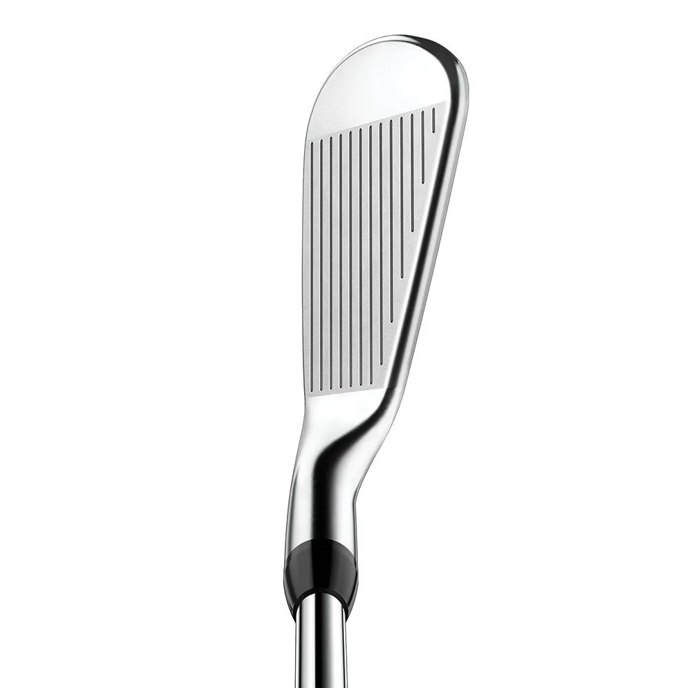 The design goal for the T200 iron was distance without sacrificing looks, feel, trajectory or stopping power. The aesthetics of the T200 have been modernised from its predecessor – the AP3, much of the change is attributable to the inclusion of what Titleist calls Max Impact Technology in the 4 iron through to the 7 iron. Max Impact technology in T200 means you get maximum speed from nearly any impact point on the face. The screw that is visible in the back of the T200 head serves as the anchor for Max Impact, there is a new polymer core positioned inside the iron which not only produces more speed but helps to balance the speed across the entire face. Max Impact evenly supports the entire clubface, not just the area where the scorelines are, it is located at the geometric centre of the clubface. As with the T100, the T200 has been slimmed down relative to its predecessor – the AP3, blade lengths are shorter, toplines are thinner, there’s much less offset, and a more refined sole offers enhanced turf interaction. Around 90-grams of tungsten in each clubhead pushes the centre of gravity down, which in addition to allowing for stronger lofts, lowers the sweet spot and helps the ball to fly higher and come down at a steeper angle with tighter dispersion.