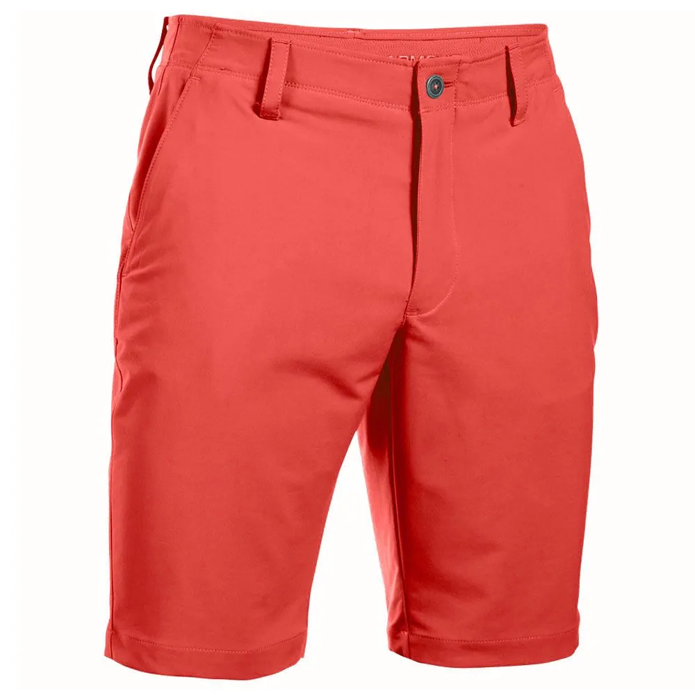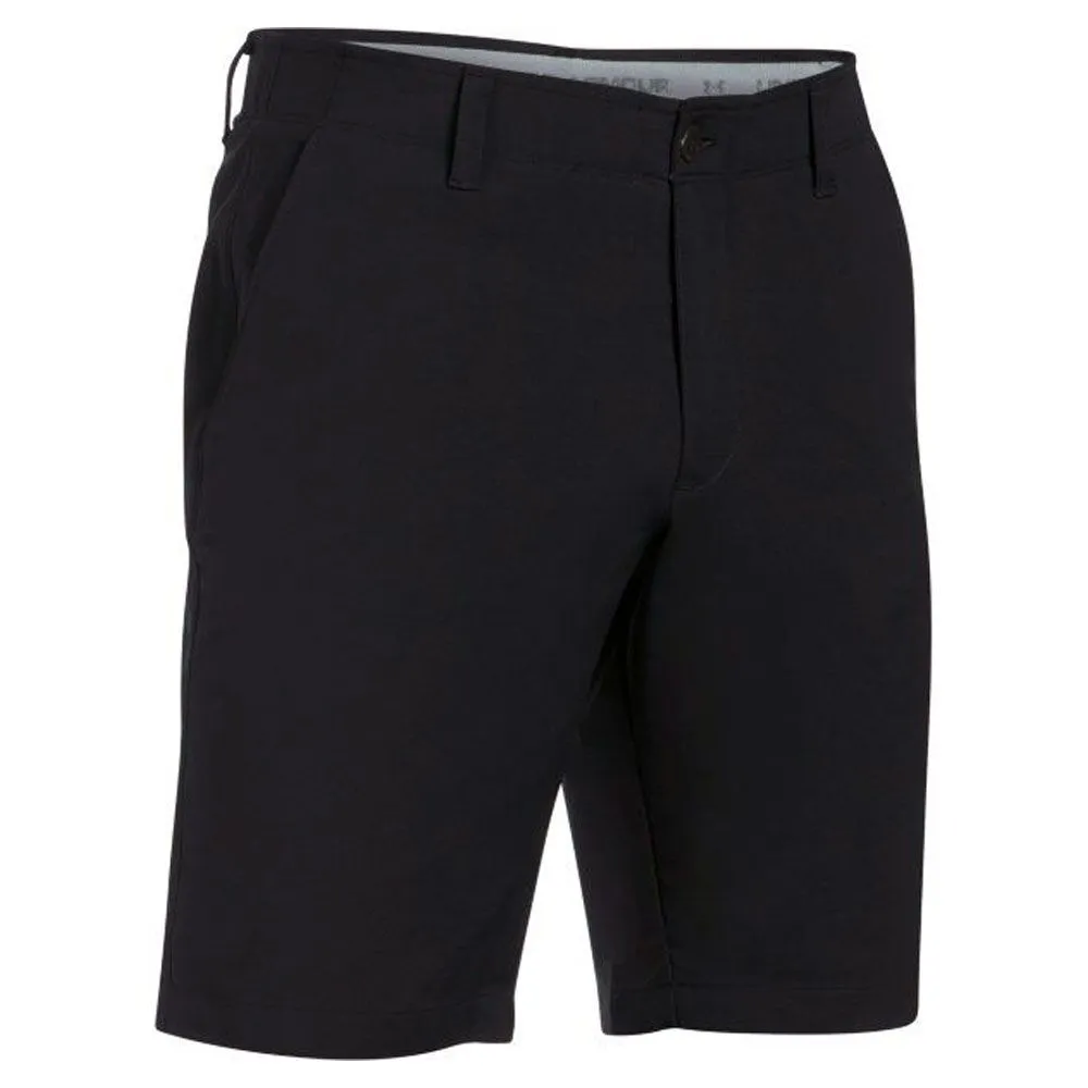 The Men’s Under Armour Matchplay Tapered Golf Shorts have a modern, flat front design and are constructed using a lightweight and durable HeatGear ® fabric. HeatGear ® will wick sweat away from your skin, pulling it to the garment’s surface and speeding evaporation which will keep your body feeling cool and dry so you can perform at your best on the course. The polyester/elastane fabric blend gives that extra bit of stretch for greater freedom of movement and a stretch-engineered waistband allows for a perfect fit. The use of rubber Under Armour printing inside the waistband also also helps to keep your shirts tucked in place throughout your swing. These shorts are a slim fit design and are finished with two front slash pockets and two rear pockets and an embroidered Under Armour logo above the right pocket – a stylish addition to your summer clothing range.